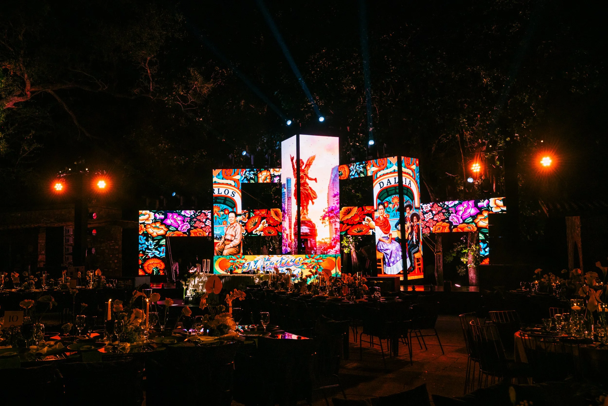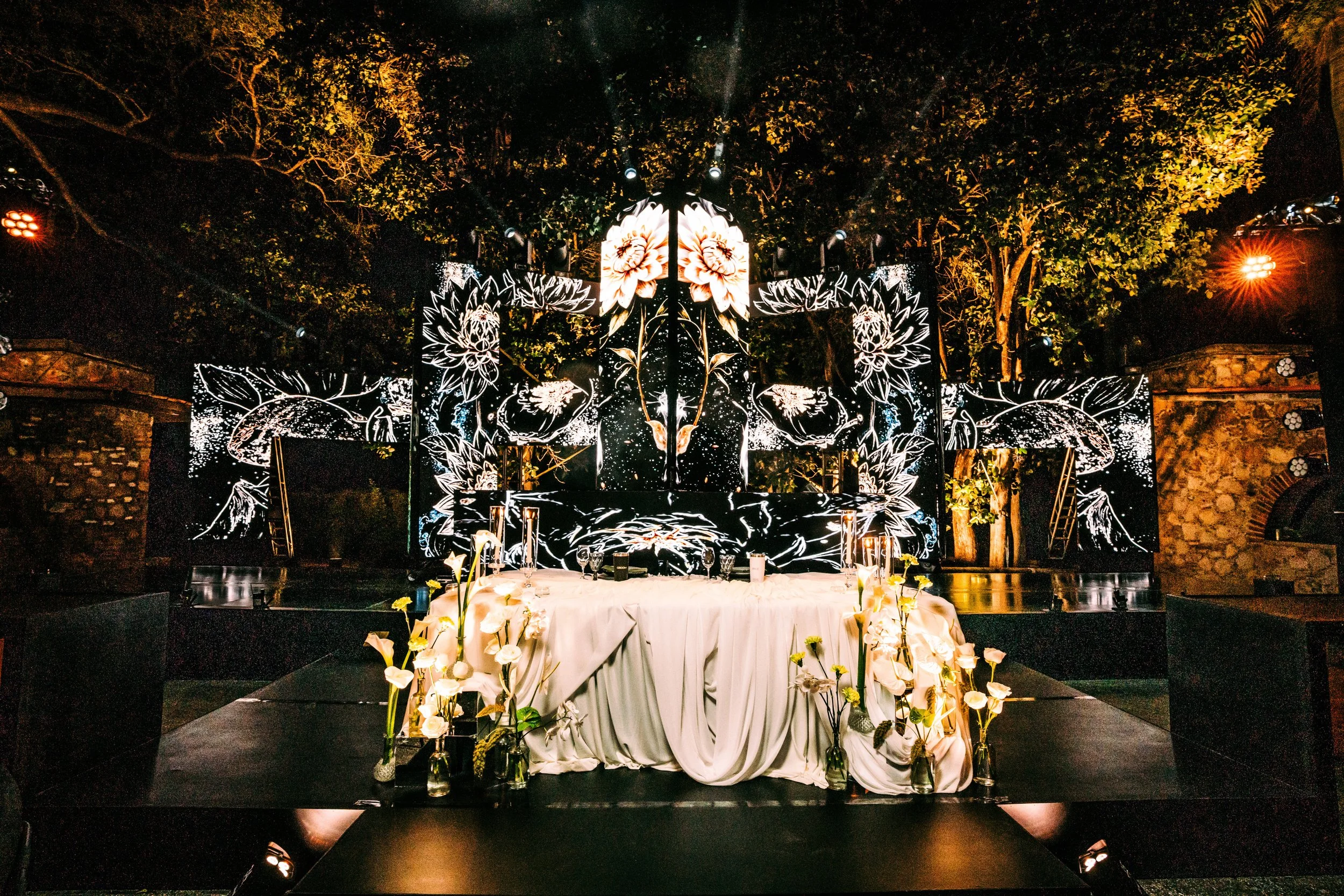 Para este evento único el equipo de Sense DJ buscó romper la fórmula tradicional de las bodas incorporando tecnología y técnicas visuales vanguardistas como parte de la escenografía, para crear un escenario reactivo que acompañe la narrativa en la pista. La pista de baile se plantea como el eje simbólico del evento —lugar de emoción, desahogo y memoria compartida— y las bodas se diseñan cada vez más como un viaje continuo sin cortes bruscos entre los momentos formales y la fiesta. Concentrando todo en una experiencia continua.